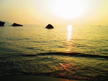 ・久方ぶりにつながった砂浜と金毘羅さんと言う岩。